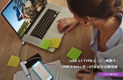 TCSTAR TYPE-C轉網卡/USB2.0 HUB轉接器 TYC-MF003GR