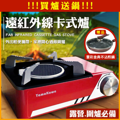 【YAMAKAWA】4KW遠紅外線卡式爐/卡式爐/露營/烤肉/火鍋🔥另贈雲彩金典不沾煎鍋
