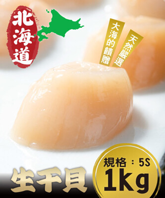 【鮮綠生活】日本北海道生干貝1公斤(5S級禮盒裝)