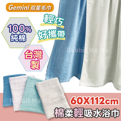 台灣製純棉浴巾 112x60cm Gemini雙星 旅遊用浴巾 游泳浴巾 棉柔輕薄 吸水快乾 旅行居