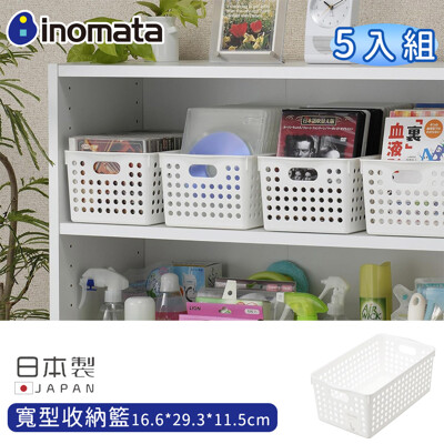 【日本Inomata】寬型收納籃 白色 雜物籃-5入組16.6*29.3*11.5cm