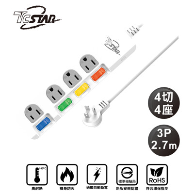 TCSTAR TCP-4845 4切4座延長線 電源線 電腦延長線 電源延長線 9尺