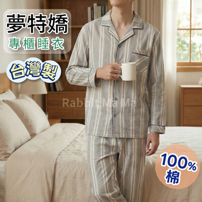 夢特嬌睡衣 台灣製精典條紋男生睡衣 58529 純棉睡衣 居家服.男性睡衣 兔子媽媽