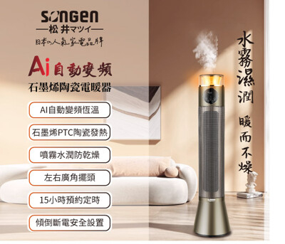 【SONGEN松井】AI自動變頻噴霧水潤石墨烯陶瓷電暖器/暖氣機/電暖爐(SG-818NP)