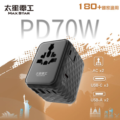 【太星電工】氮化鎵PD70W萬國轉換頭/萬國轉接插座 手機充電 快充 出國旅行5USB(2A3C)