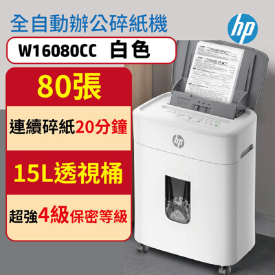 [HP原廠] HP 全自動80張 W16080CC 靜謐白 段狀P4等級 超高效辦公智能碎紙機