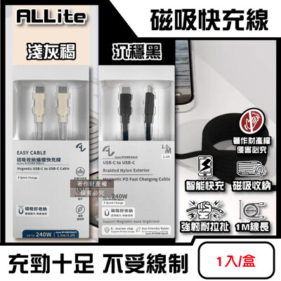 ALLite-EASY CABLE USB-C to USB-C磁吸收納編織快充線1入/盒