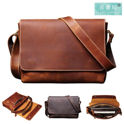 【喜番屋】真皮頭層瘋馬牛皮男士翻蓋肩背包斜背包郵差包男包【LB1178】