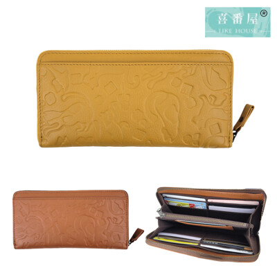 【喜番屋】日貨-真皮頭層牛皮貓咪圖騰拉鍊長夾皮夾錢包女夾-野村修平【LH1143】