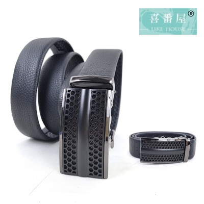 【喜番屋】真皮頭層牛皮帶寬3.5CM男士自動扣皮帶-網洞【LL232】