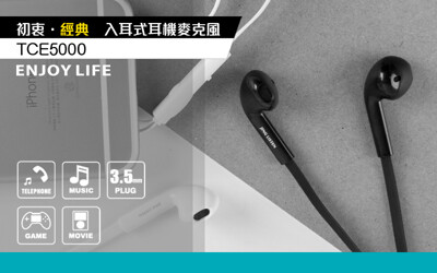 TCSTAR入耳式耳機麥克風TCE5000BK黑色