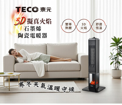 【TECO東元】石墨烯3D擬真火焰PTC陶瓷立式電暖爐/暖氣機/電暖器(XYFYN3008CBB)